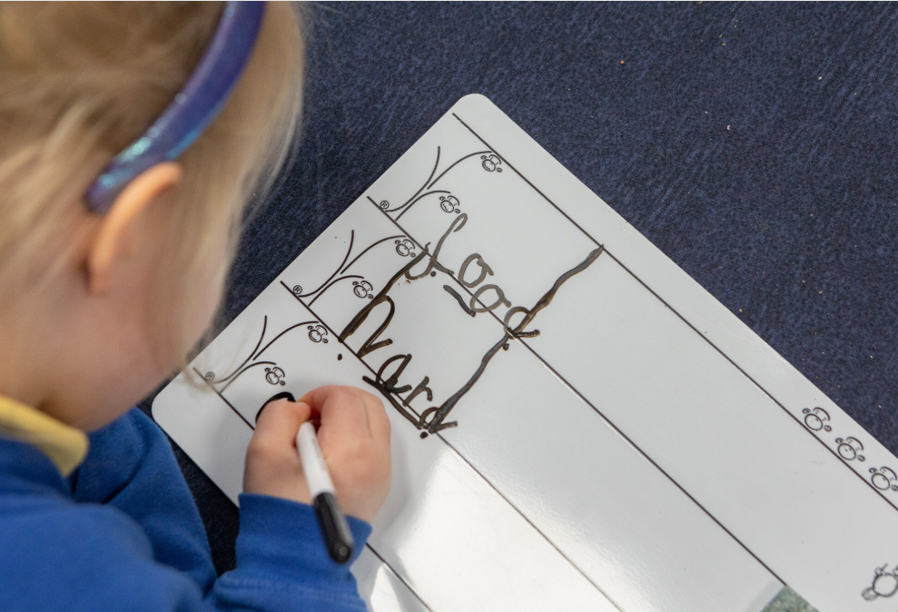 Pupils have 3 weekly handwriting lessons using the Kinetic Letter handwriting program. This focuses on developing the correct pen grip, developing muscles for writing and learning the correct formation for each letter from the first day it is taught.